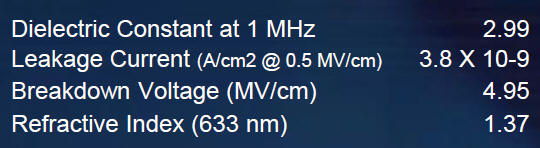 • Planarization > 90% at 1 ¥ìm feature • Coating thickness 2300 ¡Ê - 4000 ¡Ê per coat • Bake temperature / time 80oC / 2 min - 230oC / 4 min • Cure temperature / time 450oC / 30 min in N2 |