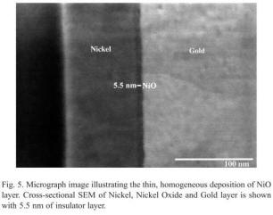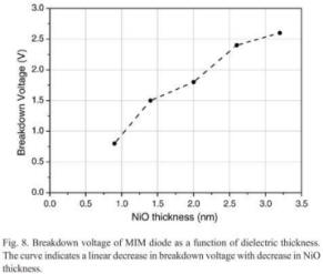 Effects of dielectric thickness and contact area on current-voltage characteristics of thin film metal-insulator-m | NiO 5nm by Plasma oxidation of Ni |