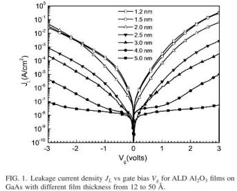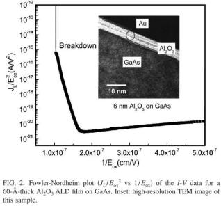 | 2005 | Leakage current and breakdown electric-field studies on ultrathin atomic-layer-deposited Al2O3 on GaAs | Al2O3 1.5 ~ 6 nm by ALD |